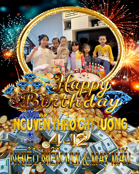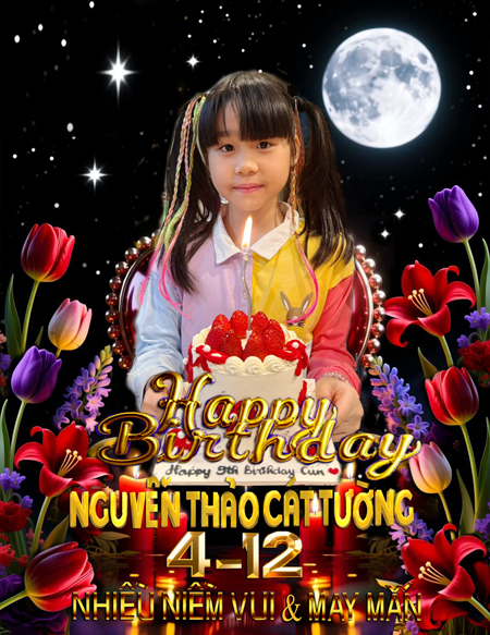 Chúc mừng sinh nhật Nguyễn Thảo Cát Tường ngoan, học giỏi, vui vẻ, an lành, hạnh phúc, dồi dào sức khỏe & gặp nhiều may mắn ! |